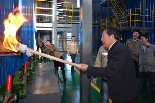 (副市長孫建華在城發(fā)公司辛家營熱源廠為2號爐點火 李波攝)