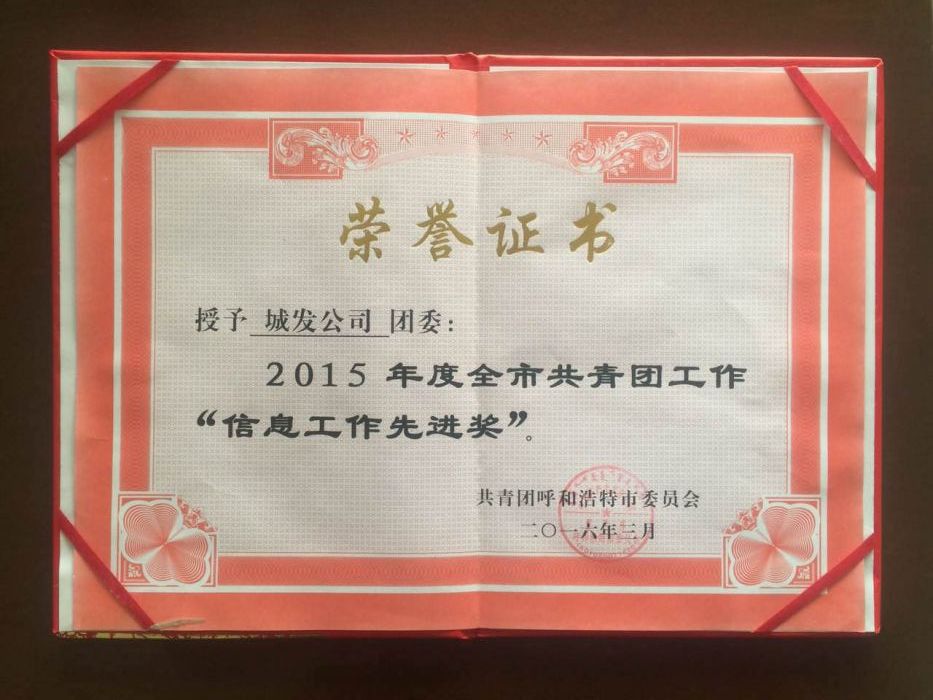 2016年3月15日,下午3時(shí),在市政府黨政辦公大樓207會(huì)議室舉辦召開了;共青團(tuán)呼和浩特市十六屆三次全委會(huì)議及市少工委五屆六次會(huì)議。會(huì)議上,全市23個(gè)團(tuán)委進(jìn)行了表彰。城發(fā)公司團(tuán)委榮獲;全市共青團(tuán)工作引領(lǐng)文明風(fēng)尚獎(jiǎng)、;信息工作先進(jìn)獎(jiǎng)兩個(gè)單項(xiàng)獎(jiǎng),獲得;2015年年度全市共青團(tuán)工作綜合獎(jiǎng)。