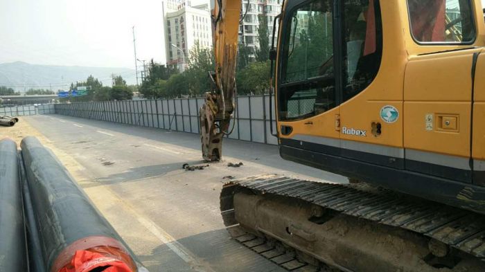 7月14日市政局下達(dá)昭烏達(dá)路哲里木路改造提升工程成吉思汗大街至北二環(huán)段供熱管網(wǎng)改遷入場通知,此段改遷項目分為南北兩部分。其中北段涉及管徑為DN400,溝長110米,新線位向東移位約9米,7月18日晚已完成原有管線的拆除工作,現(xiàn)溝槽已回填。新管線位已設(shè)立圍擋,正在進(jìn)行開槽。南段涉及管徑為DN450,溝長170米,新線位向東移動10米,由于工期緊,采用先裝新管線再拆除舊管線的施工方案,20日上午已開始切割新管線的路面。
