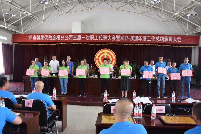 2018年6月15日上午,城發(fā)金橋熱網(wǎng)分公司第三屆第一次職工代表大會暨2017-2018采暖年度工作總結(jié)表彰大會在分公司五樓會議室召開。城發(fā)公司工會副主席張智強、分公司班子成員、職工代表、列席代表、先進集體和先進個人近200人參加會議。