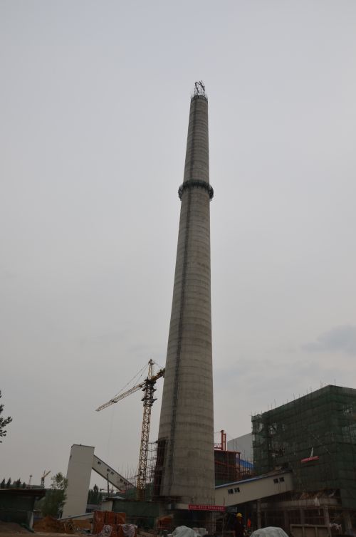 120米煙囪已經(jīng)完成110米。