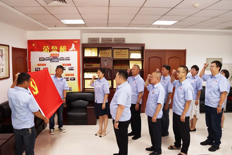 物業(yè)公司黨支部按照發(fā)展黨員的組織程序,吸收新鮮血液,充實了組織力量,今年按期轉(zhuǎn)正1名黨員,吸收了1名預備黨員。組織委員郝曉東同志為預備黨員史濤同志佩戴了黨徽,面對鮮紅的黨旗,在領誓人娜仁同志的逐句領讀下,史濤用慷慨激昂的語氣,莊嚴向黨旗宣誓,表達對黨的忠誠、為共產(chǎn)主義奮斗終身的決心,并表示,一定會珍惜共產(chǎn)黨員的光榮稱號,不負使命,立足崗位、踏實工作、謹守誓言、履行黨員義務,為黨增光添彩!