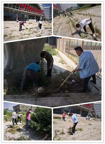 經(jīng)過一上午的作業(yè),廣場(chǎng)上的蒿草基本清理完畢。大家