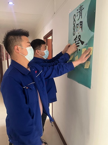 受新冠肺炎疫情影響,避免人群聚集,黨支部制作了祭英烈、宣傳文明祭掃海報(bào),張貼在樓道醒目位置,引導(dǎo)黨員干部在緬懷先輩的情懷中弘揚(yáng)傳統(tǒng)、增進(jìn)愛黨、愛國(guó)、愛社會(huì)主義的情感,通過留言寄語(yǔ),表達(dá)對(duì)革命先烈的緬懷和崇敬之情,同時(shí)要求黨員干部要以身作則,努力在節(jié)儉治喪、文明祭掃等方面作表率,以實(shí)際行動(dòng)影響和帶動(dòng)身邊群眾,做文明之風(fēng)的倡導(dǎo)者和傳播者,做革除陋習(xí)的先行者、移風(fēng)易俗的推進(jìn)者、文明祭祀的示范者。