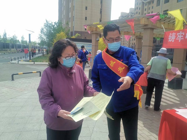 活動現(xiàn)場,黨支部書記娜仁按照既定方案,帶領大家分頭行動起來。“民族政策宣傳組”的隊員們一邊向過往的居民發(fā)放黨的民族理論和民族政策宣傳單,一邊做好現(xiàn)場宣傳講解,重點宣傳了黨的民族政策的主要內(nèi)容、民族平等政策的內(nèi)涵、民族區(qū)域自治政策的內(nèi)涵、現(xiàn)階段我國民族工作的主題、現(xiàn)階段發(fā)展少數(shù)民族經(jīng)濟的方針、民族團結(jié)關系的“三個離不開”內(nèi)容、民族團結(jié)工作的“四個維護”內(nèi)容及習近平總書記對各民族提出的“五個認同”等內(nèi)容;講解了如何理解“中華民族共同體意識”、如何理解“推廣普及國家通用語言文字教育”等內(nèi)容。“安全防火宣傳組”的隊員們分三組入樓開展安全防火宣傳檢查,重點對樓道內(nèi)個別存在的亂堆放雜物、亂停非機動車及擅自占用、堵塞消防通道的住戶張貼清理通知單、宣傳將樓道占為己用的重大安全隱患,并告知業(yè)主限期自行清理,切實保障廣大業(yè)主的居住安全和環(huán)境衛(wèi)生。